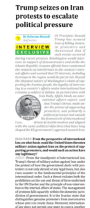 «از منظر حقوق بین‌الملل، تهدید ترامپ به حمله نظامی علیه ایران به بهانه نحوه برخورد حکومت با معترضان نه‌تنها فاقد مبنای حقوقی است، بلکه با اصول اساسی نظم بین‌المللی نیز در تعارض قرار دارد. چنین تهدیدی هم اصل منع توسل و تهدید به زور در منشور ملل متحد و هم اصل عدم مداخله در امور داخلی دولت‌ها را نقض می‌کند. نحوه مدیریت اعتراضات، جزو صلاحیت‌های داخلی دولت‌هاست و این دولت ایران است که معترضان واقعی را از مزدورانی که هدفشان ایجاد آشوب است، تشخیص می‌دهد. ضمن اینکه حقوق بین‌الملل اجازه نمی‌دهد دولتی با تهدید نظامی، دولت دیگر را وادار به تغییر رفتار داخلی خود کند. بنابراین، تهدید ترامپ بیشتر یک ابزار فشار سیاسی خارج از چارچوب حقوق بین‌الملل و برای انگیزه‌های خصمانه محسوب می‌شود.»