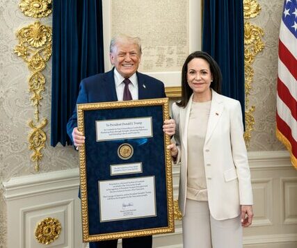 «ماریا کورینا ماچادو» رهبر مخالفان ونزوئلا در جریان دیدار با «دونالد ترامپ» رئیسجمهور آمریکا جایزه نوبل صلح خود را به رئیس کاخ سفید تقدیم کرد.