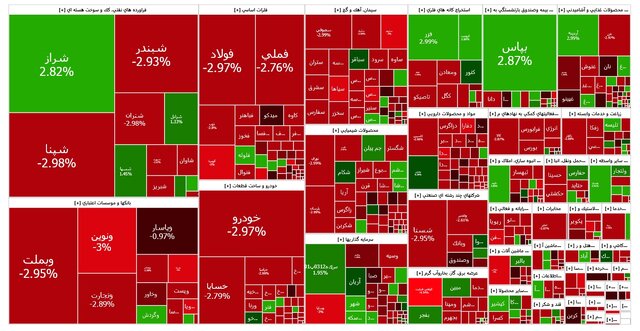 نمادهای فارس، فملی و فولاد بیشترین تأثیر منفی را بر شاخص کل داشتند و در میان نمادهای پرتراکنش میتوان به خودرو، وبملت و خساپا اشاره کرد.