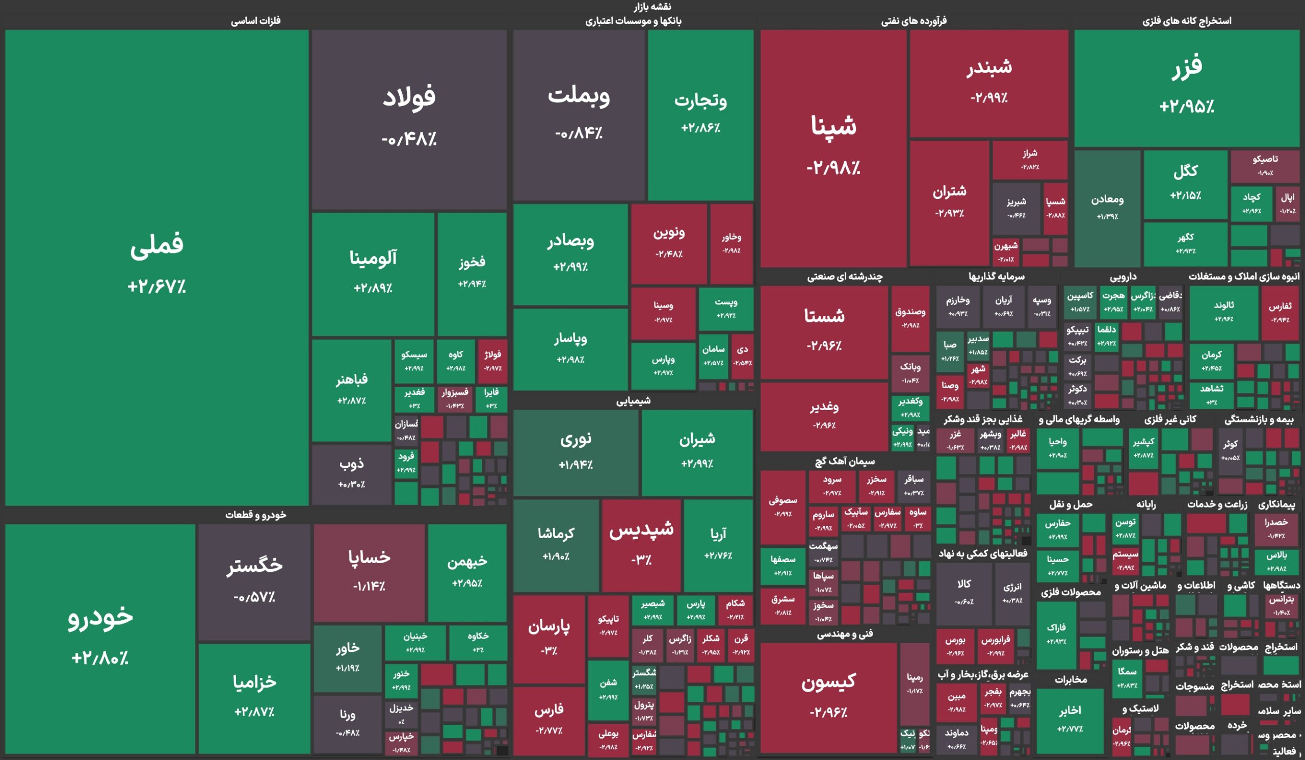 در میان نمادهای پرتراکنش، خودرو، فملی و وتجارت رشد ۲.۸ درصدی ارزش سهام را ثبت کردند. در نماد خودرو، ۹.۲ میلیارد سهم به ارزش ۴۴۰ میلیارد تومان و در نماد فملی ۱.۸ میلیارد سهم به ارزش ۱,۳۸۶ میلیارد تومان جابه‌جا شد؛ قیمت هر سهم فملی به ۷۷۰ تومان رسید.