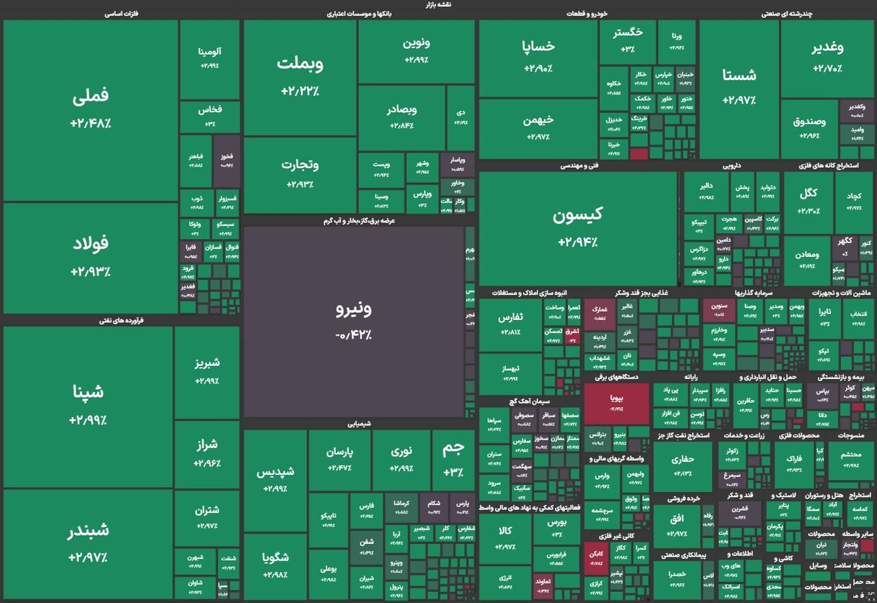 بازار بورس در دومین روز کاری هفته با جهش بیش از ۴۲ هزار واحدی آغاز به کار کرد و با رشد شاخص کل تا سطح دو میلیون و ۹۹۲ هزار واحد، در آستانه ورود به کانال سه میلیون واحدی قرار گرفت؛ نمادهای معدنی و پتروشیمی محرک اصلی این رشد بودند.