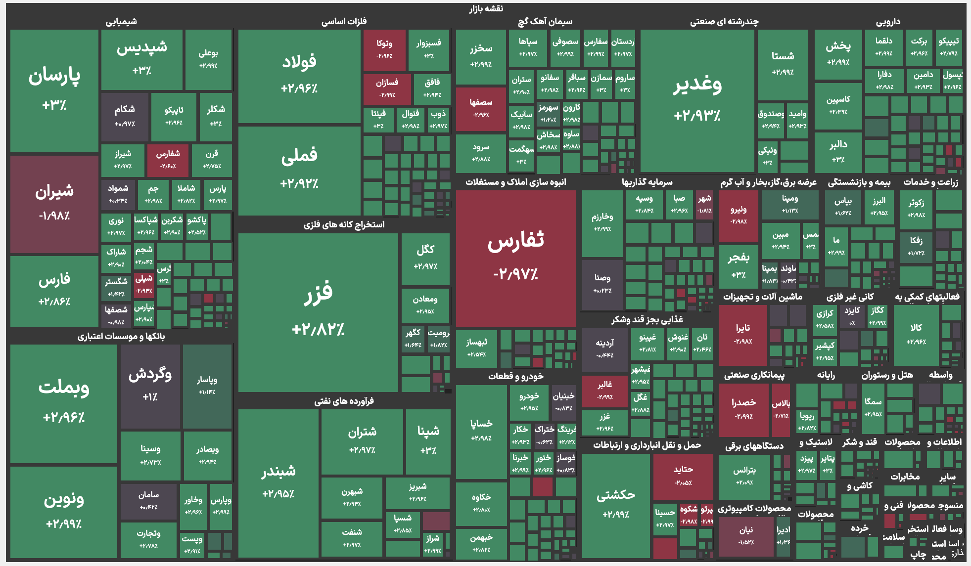 در پایان معاملات امروز، شاخص کل بورس تهران ۶۱,۱۴۷ واحد رشد کرد و به سطح ۲,۷۰۰,۰۰۰ واحد رسید. شاخص هموزن نیز با جهش بیسابقه ۱۴,۲۱۳ واحدی، پس از جنگ ۱۲ روزه برای نخستینبار وارد کانال ۸۰۰ هزار واحد شد و در عدد ۸۰۸,۰۰۰ واحد ایستاد. نمادهای «فارس» و «فملی» هرکدام بیش از ۶ هزار واحد در رشد شاخص کل تاثیر داشتند.